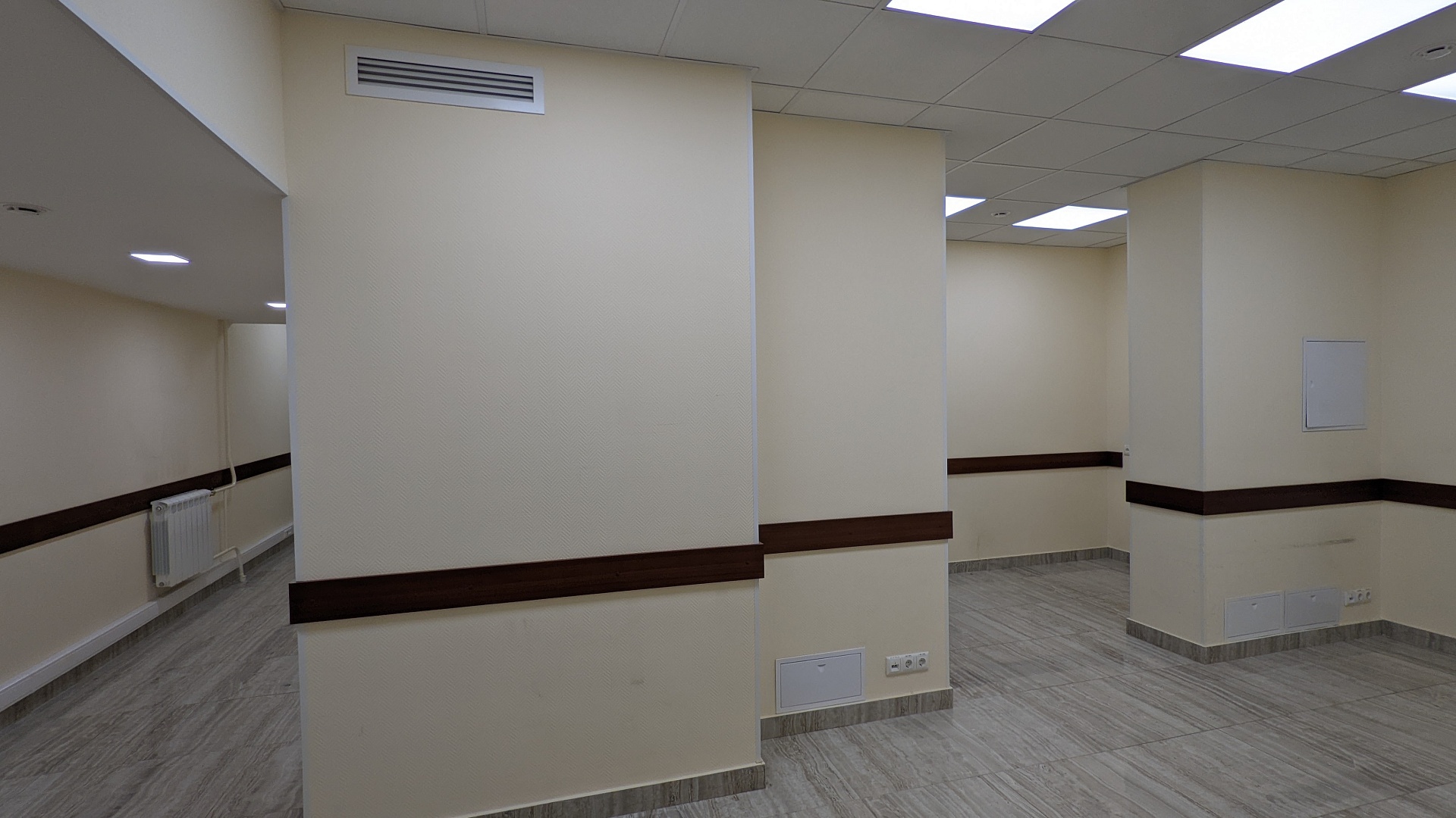 В офисе выполнен качественный ремонт: подвесные потолки, светодиодное освещение, пол в кабинетах – ламинат, в коридоре, с/у, на балконе и на кухне – керамогранит, новые стеклопакеты, деревянные панели (отбойники) на стенах кабинетов и коридора, деревянные двери.